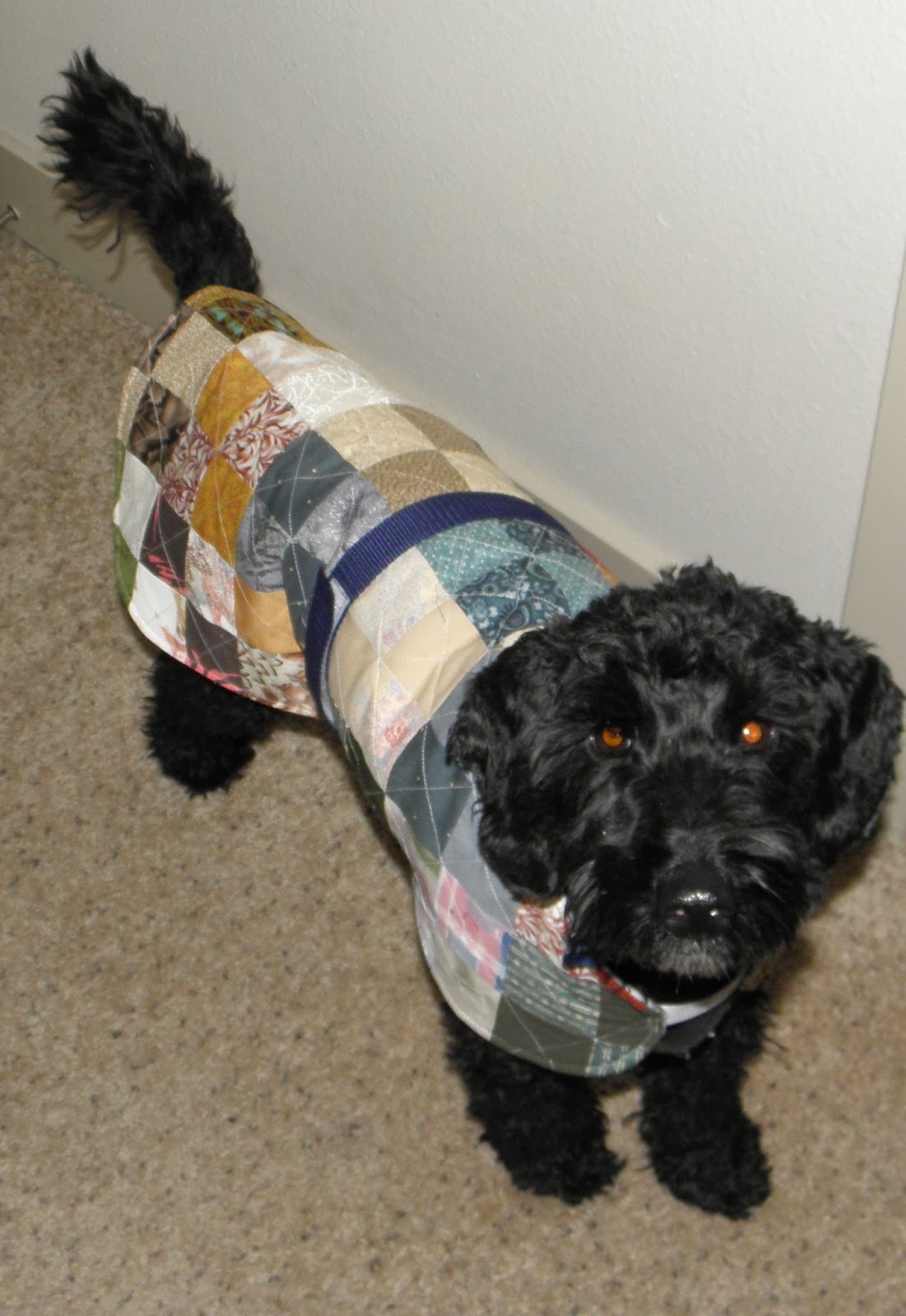 Then you need a piece of fabric and some batting. Any scrappy patchwork or UFO you no longer want will do fine for this or you can take the time to create a patchwork design that suits your dogs personality.