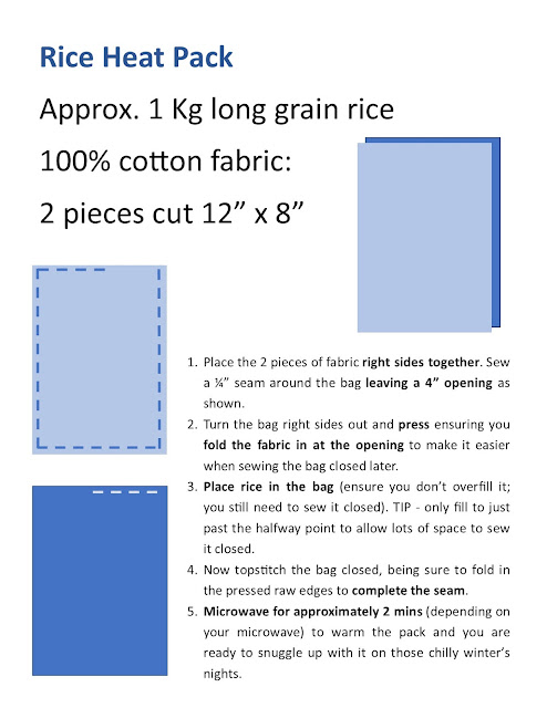 Here in Australia it is Autumn! So it was time for me to make some new microwavable rice heat packs! We had to dispose of our old ones during our repatriation because grains cannot be packed in the removalist shipping containers for import to Australia. So I created a quick printable tutorial as well for anyone wanting to make some!